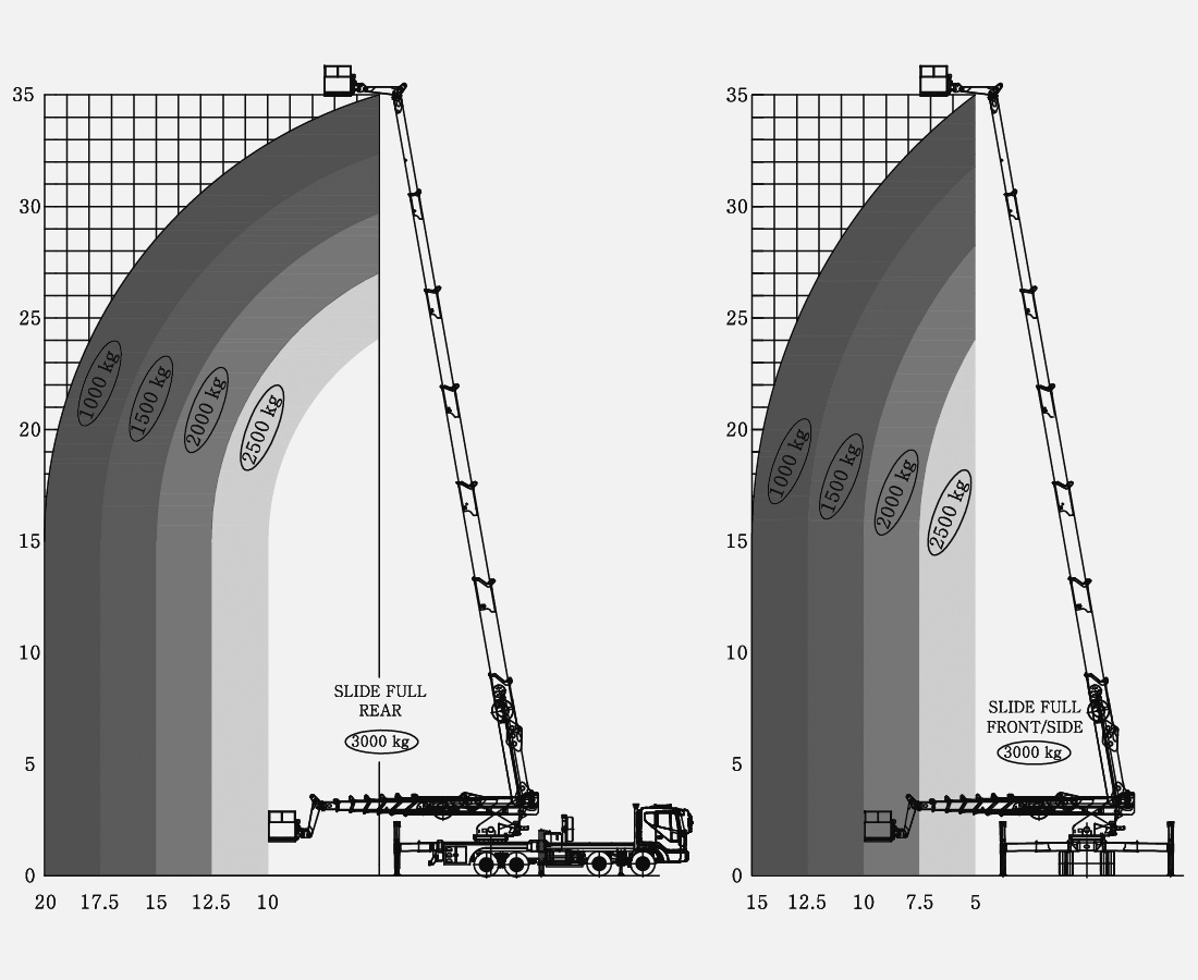 작업반경 | m/kg | 10/3,000 ~ 20/1,000 | |