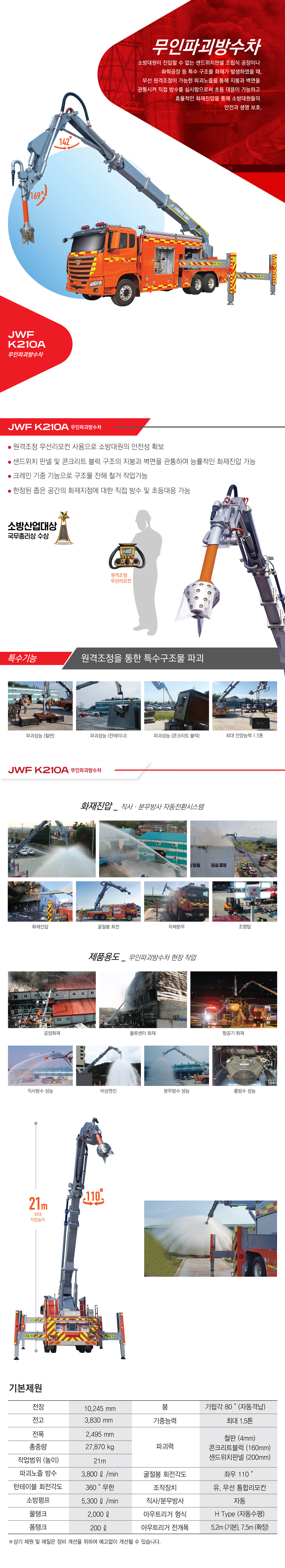 • 원격조정 무선리모컨 사용으로 소방대원의 안전성 확보